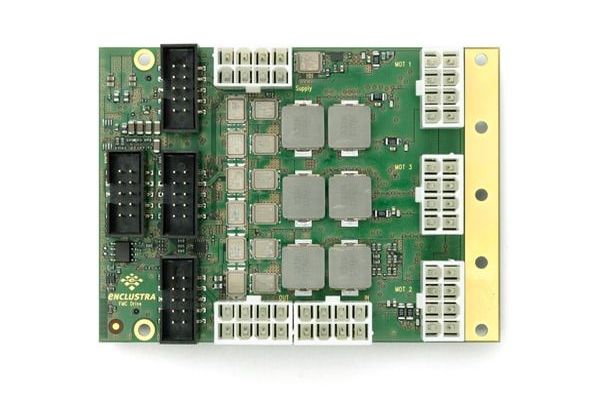 FMC-DR2は、EnclustraのUniversal Drive Controller(UDC)IPコアと組み合わせることで、最大8軸の位置・速度・電流制御、200 kHz級の制御レート、PID×最大4ループ/軸、BLDCのFOCやステッパのマイクロステップ等を活用可能です。UDCにより追加の外付けドライブコントローラICが不要となり、FPGA内で高応答・低ジッタ制御を実現します。